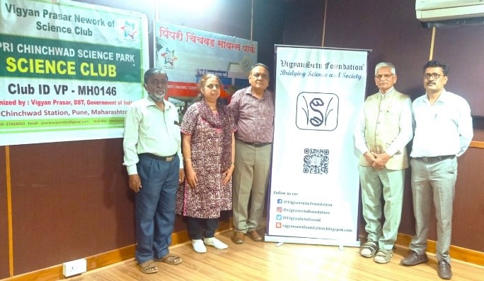 In the evening, Vigyan Setu Foundation joined the National Science Day celebration at Pimpri Chinchwad Science Park (Pune, Maharashtra). After delivering a talk on Science Tourism to the packed auditorium, our Managing Trustee, Dr Lalit Sharma, felicitated the prize winners of different activities. To many awardees, medal, certificate, and mementoes were given at the hands of our Chairperson, Dr Meena Sharma.