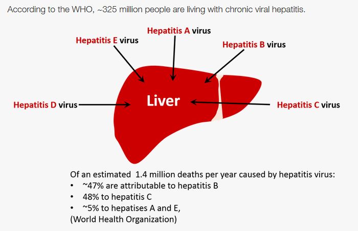 Viral Hepatitis is an inflammation of the liver caused by a viral infection. There are five main hepatitis viruses, referred to as types A, B, C, D and E. These five types are of greatest concern because of the burden of illness and death they cause and the potential for outbreaks and epidemic spread.