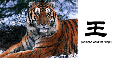 - The stripes on the forehead of a tiger can look like the Chinese character that means “king.”